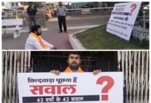 भाजपा प्रत्याशी विवेक बंटी साहू ने अनोखे अंदाज में किया विरोध।