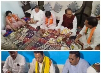 छिंदवाड़ा में कोई अपने कार्यकर्ता के घर तो कोई आदिवासी के घर जमीन पर बैठकर सादगी से भोजन का लुफ्त उठाते हैं।